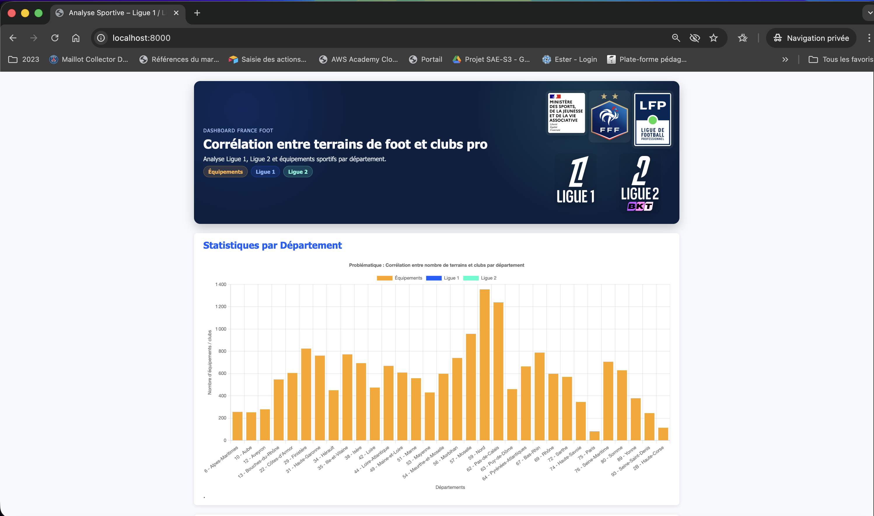 Plateforme d'analyse sémantique croisant les équipements sportifs français avec les données Wikidata des clubs professionnels (Ligue 1/Ligue 2) via des requêtes SPARQL complexes.